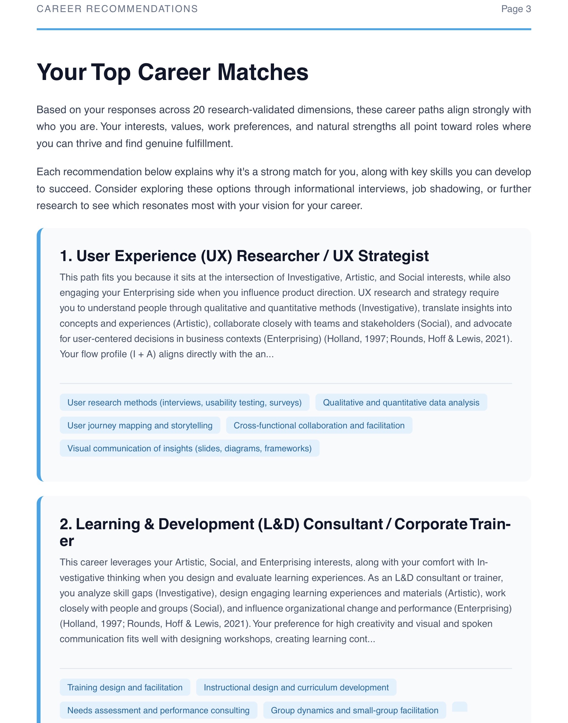 When we want to explore our calling for a career – it helps to have scientific backed AI support tools. We have you covered!